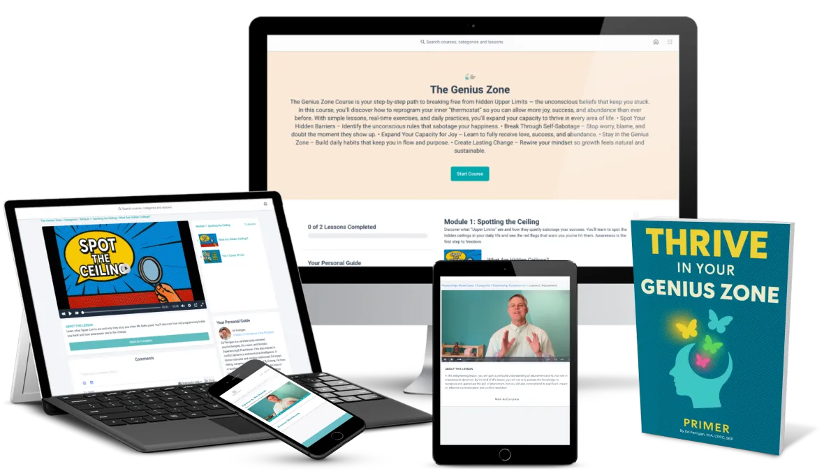 Is your step-by-step path to breaking free from hidden Upper Limits — the unconscious beliefs that keep you stuck. In this course, you’ll discover how to reprogram your inner “thermostat” so you can allow more joy, success, and abundance than ever before. With simple lessons, real-time exercises, and daily practices, you’ll expand your capacity to thrive in every area of life. [Learn More]