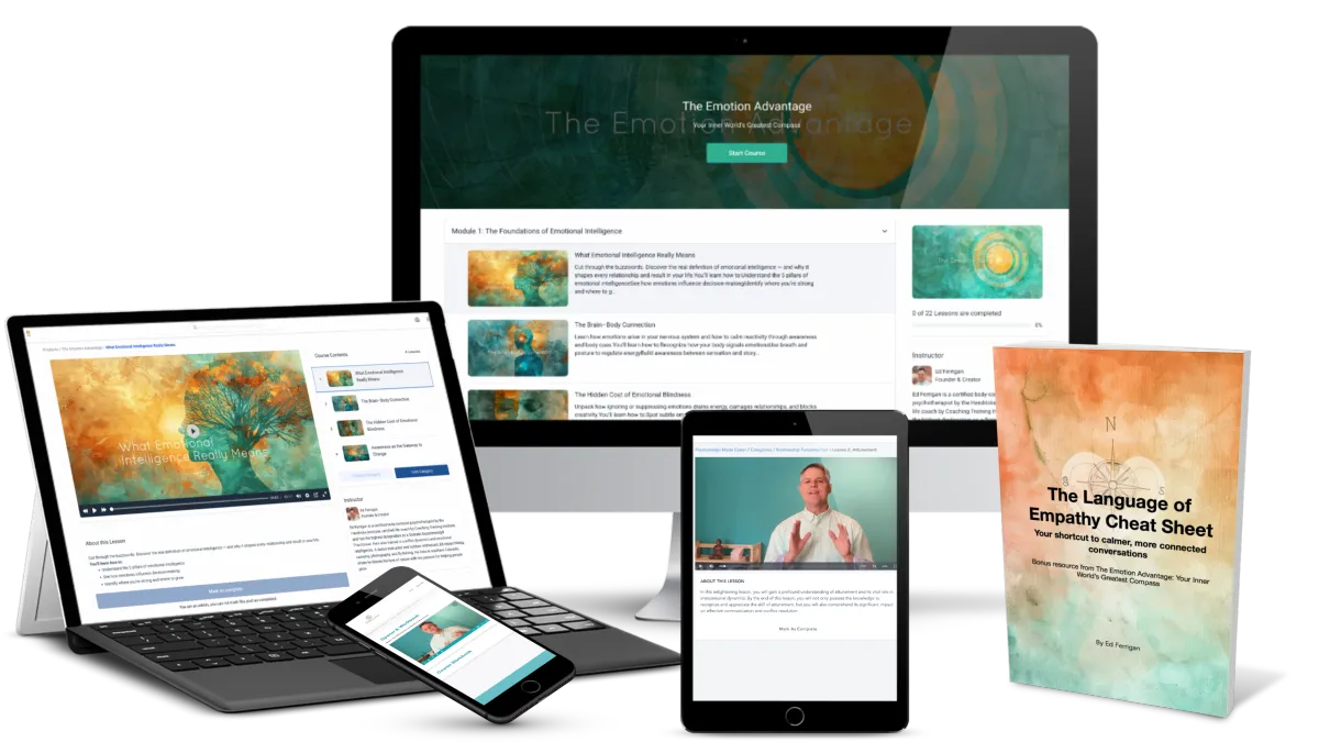 The Emotion Advantage is a simple, self-paced course that teaches you how to understand your emotions, calm your body, and stay steady when life gets stressful. If you’ve ever felt overwhelmed, reactive, or unsure why you feel what you feel, this program shows you how to turn that inner confusion into calm clarity. You’ll learn a clean 4-step method that blends psychology, body awareness, and emotional intelligence so you can read your emotions as signals that point you in the right direction. Start today and turn your emotions into your greatest advantage. [Coming Soon]
